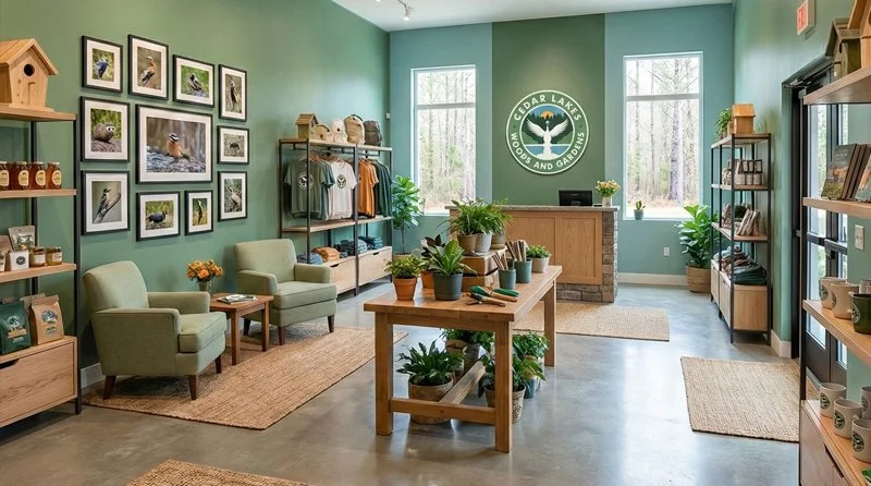 A welcoming storefront where visitors can purchase unique garden merchandise, activity books, and souvenirs, with proceeds directly supporting our ongoing 501(c)(3) non-profit efforts.