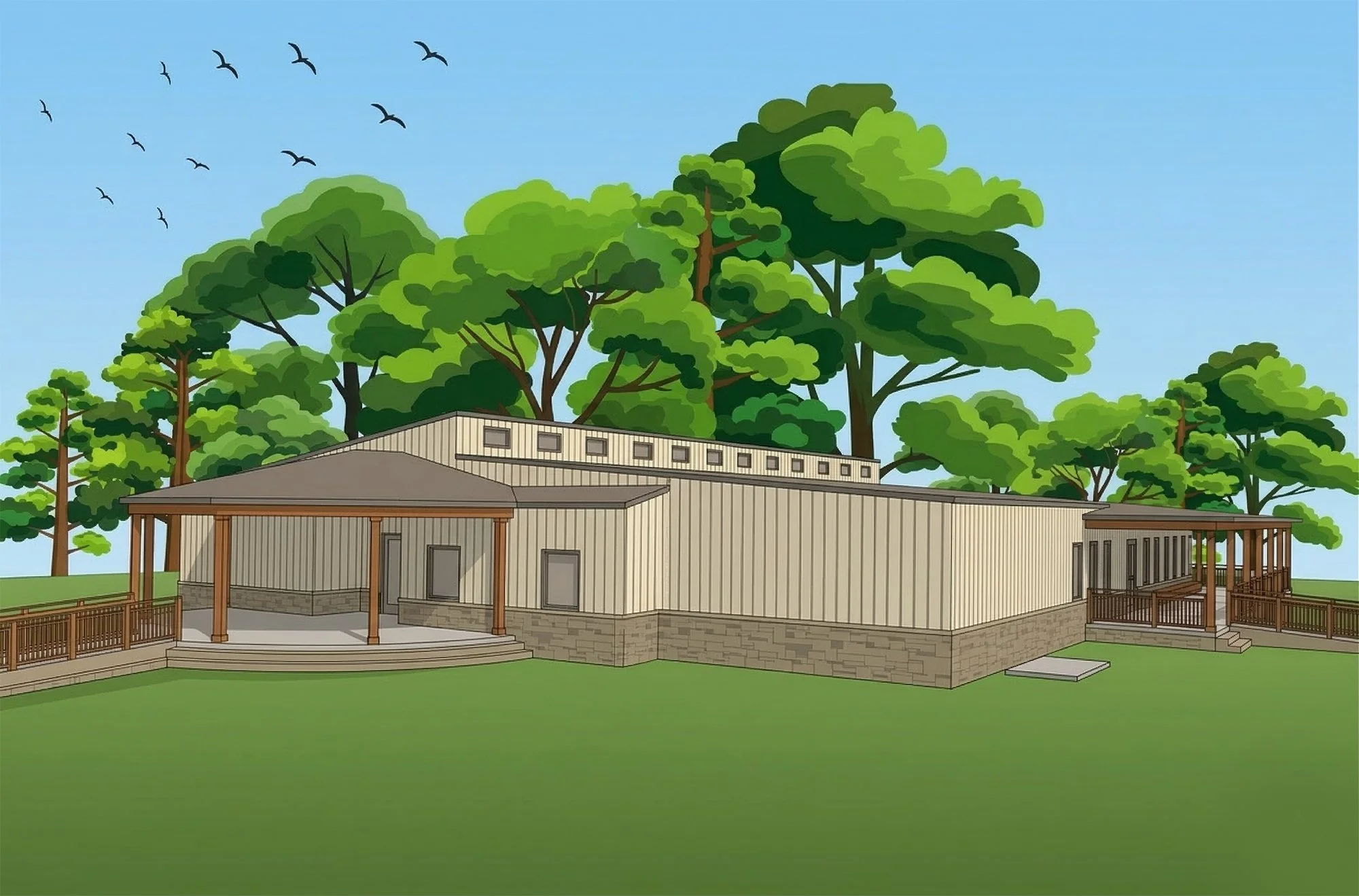 A comfortable, covered outdoor area allowing us to host workshops, school field trips, guest speakers, and other community gatherings year-round, regardless of the weather.