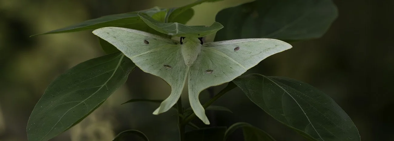 Luna Moth (Actias luna): Often referred to as the "Ghost Moth," the Luna Moth is one of our most breathtaking nocturnal residents. With a wingspan that can reach nearly five inches, they are easily recognized by their luminous, sea-foam green wings and long, elegant "swallowtails."