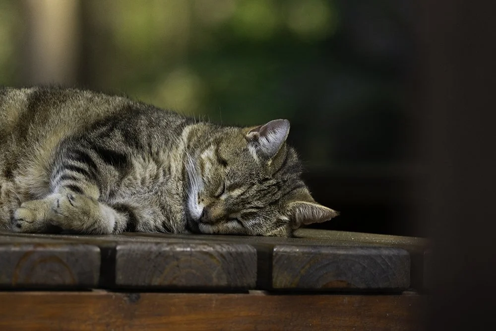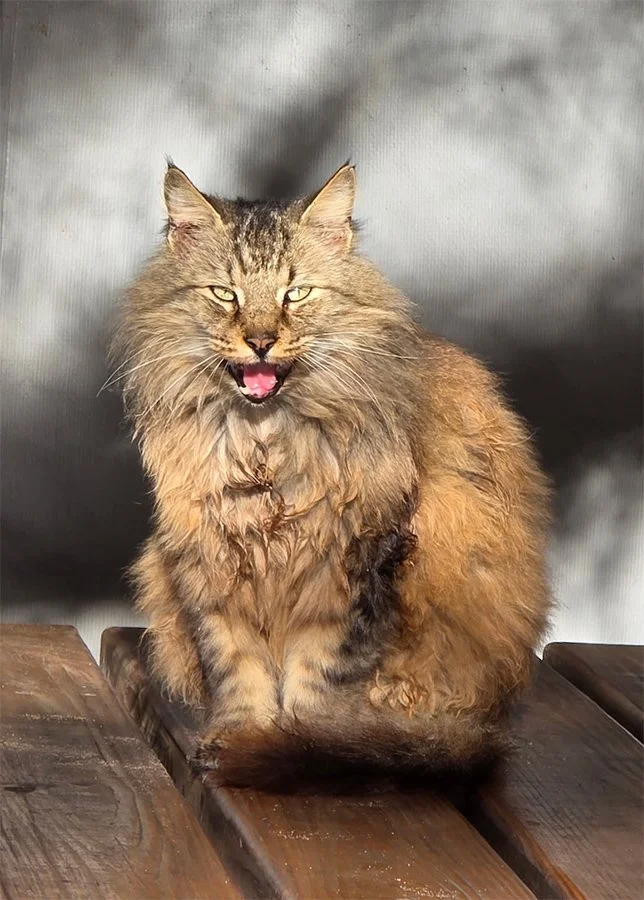 Arlene and Fuzzworth: Our male and female outdoor office cats.