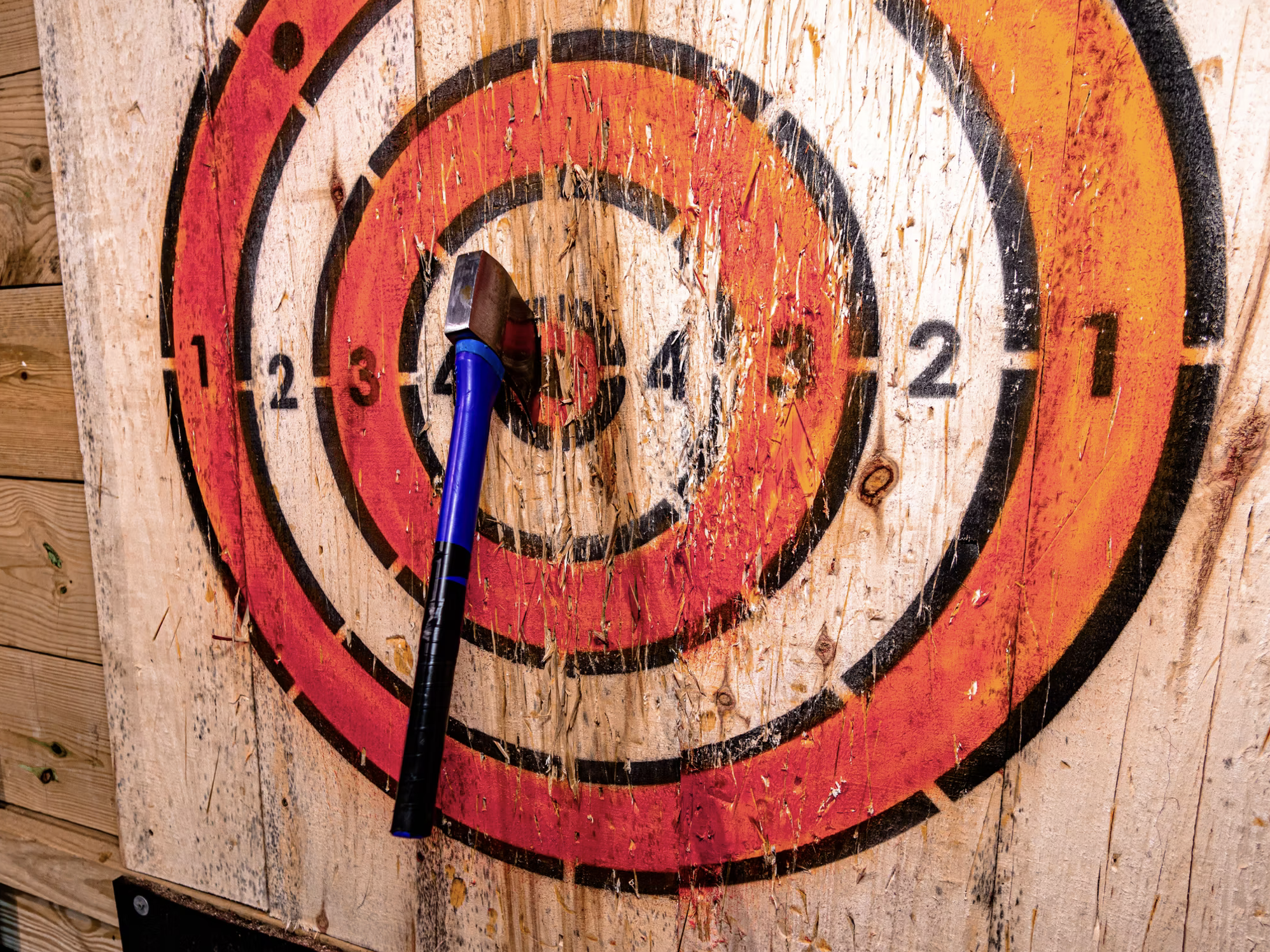 An Open-air venue offering a range of activities including axe throwing, sand volleyball, concerts and more, plus food trucks.