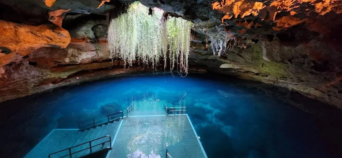 A top freshwater diving destination featuring a 100-foot deep cavern with 72°F crystal-clear water year-round.